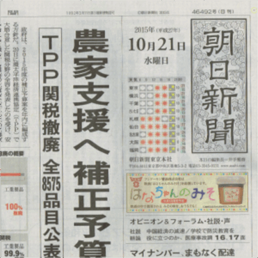 朝日新聞に広告が掲載されました(2015/10/21)