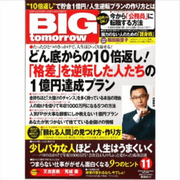 『BIGtomorrow』11月号で特集インタビュー記事が掲載されました(2013/11/1)